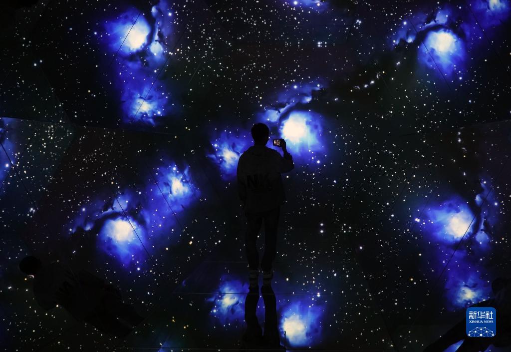 10月2日,參觀者在北京時代美術館的《星河角落:步天歌》科學藝術展上拍照。