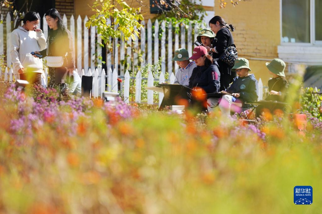 10月2日,學生在位於黑龍江省海林市的百年歷史文化小鎮——橫道河子鎮寫生。
