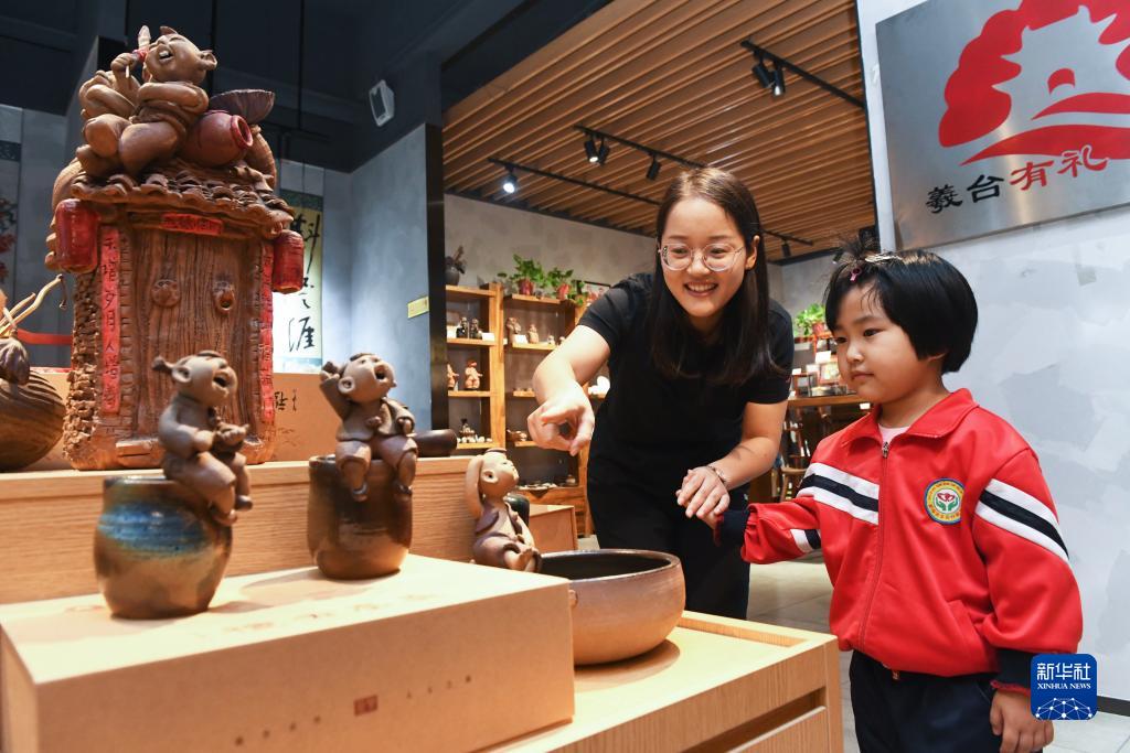 10月2日,市民在河北省石家莊新樂市文創客廳觀看展出作品。