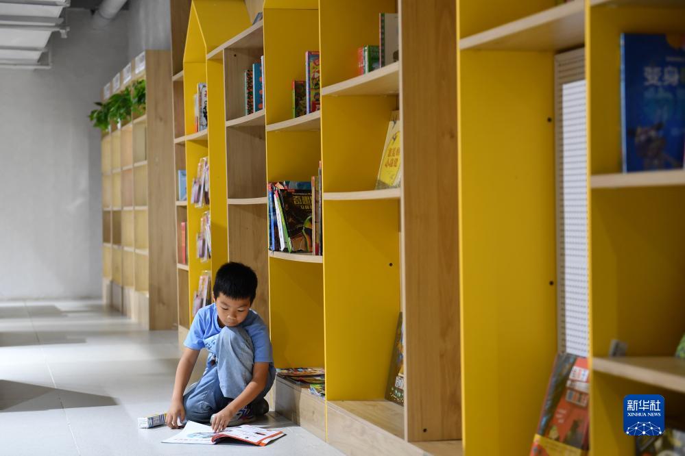 10月2日,小朋友在湖南長沙一家書店內閱讀。