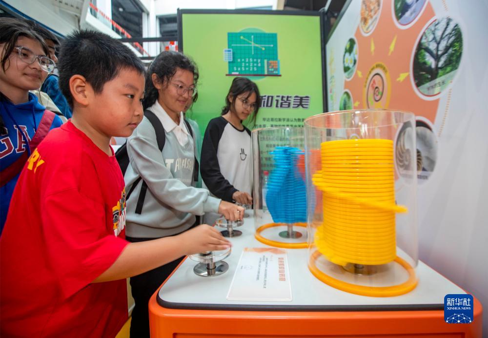 10月2日,小朋友在江蘇泰州科技館參觀體驗。