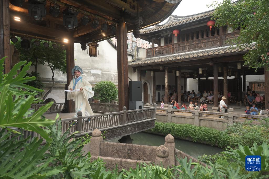 10月2日,人們在福州三坊七巷水榭戲&觀看閩劇演出。