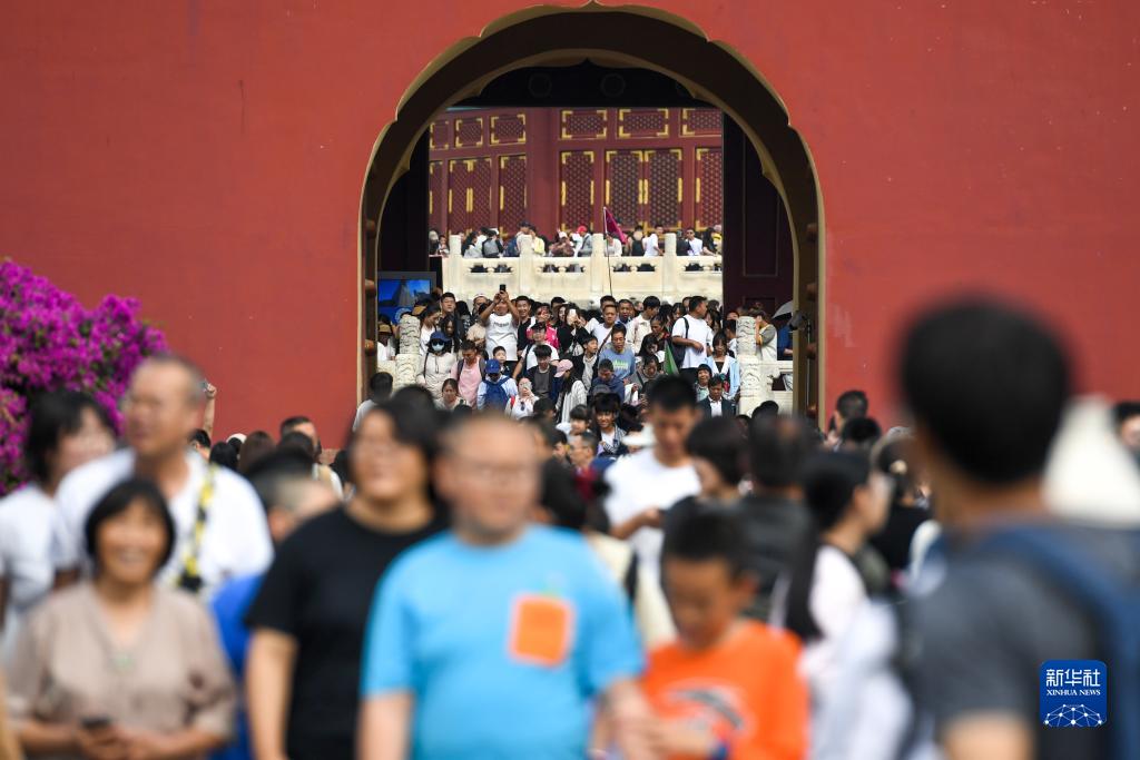 當日正值國慶假期,在北京天壇公園,來自各地的游客在這裡參觀游覽。