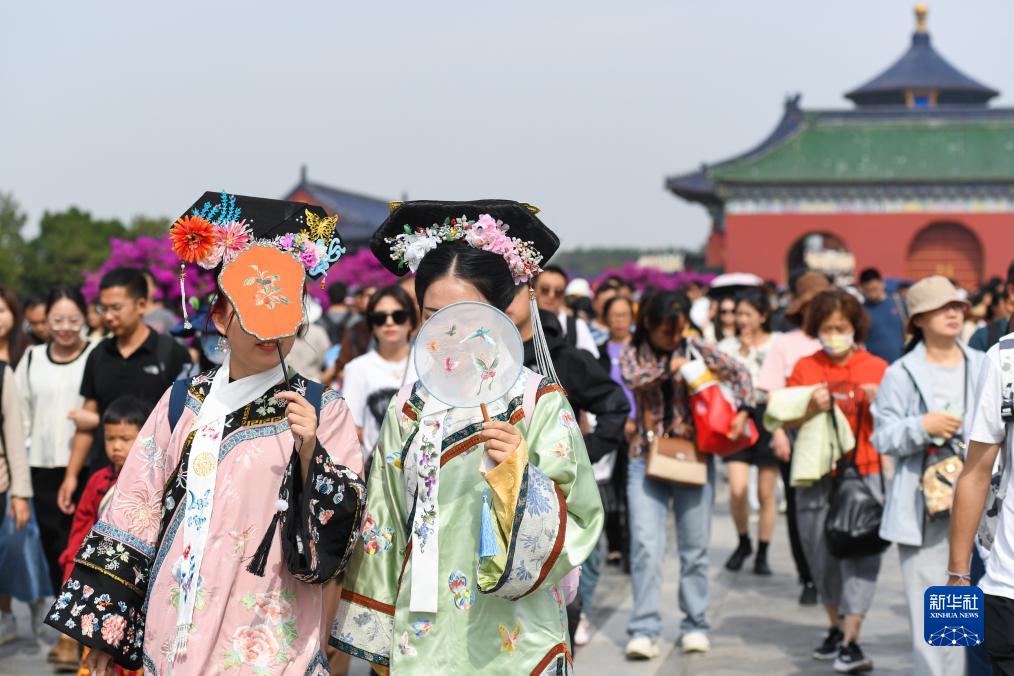 當日正值國慶假期,在北京天壇公園,來自各地的游客在這裡參觀游覽。