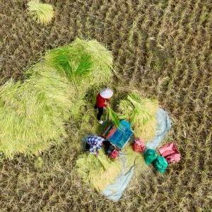 中秋前後,福建省永泰縣10多萬畝水稻進入成熟收穫期,一塊塊金黃色的稻田點綴在青山與傳統村落之間,田間地頭一派繁忙的秋收景象。