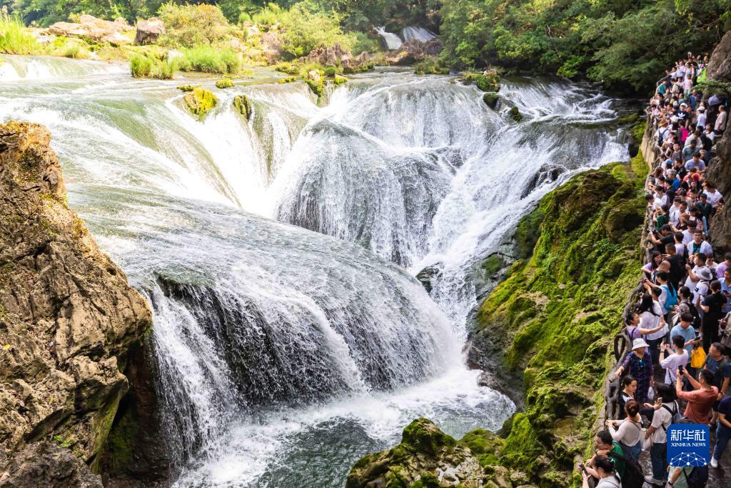 10月3日,游客在貴州省安順市黃果樹瀑布景區游玩。