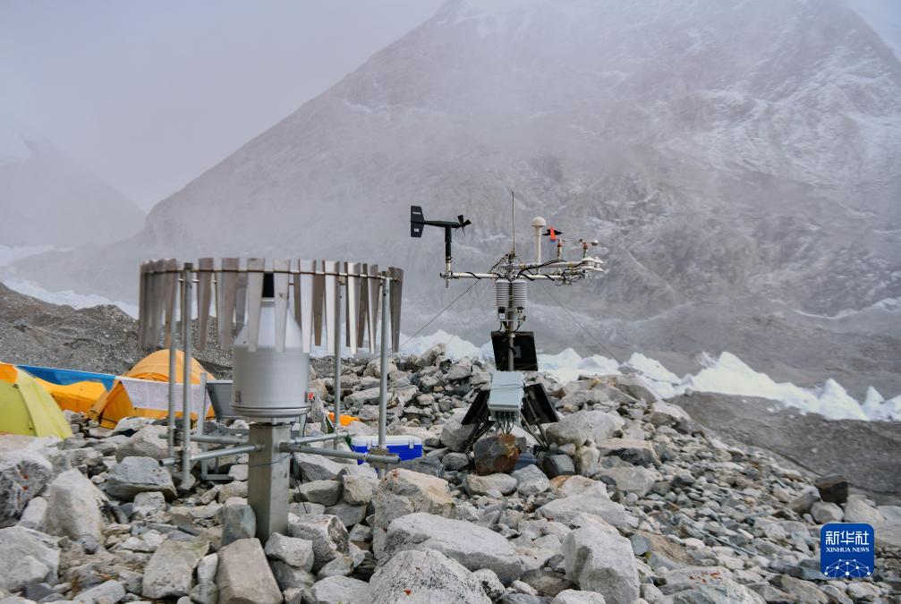 位於海拔5700米卓奧友峰前進營地的自動氣象站(9月29日攝)。