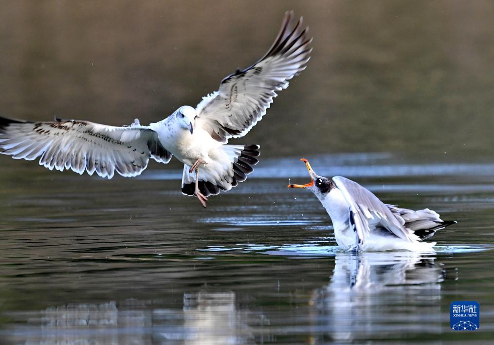 金秋十月,漁鷗在西藏拉薩市國家級自然保護區拉魯濕地裏嬉戲,惹人喜愛。