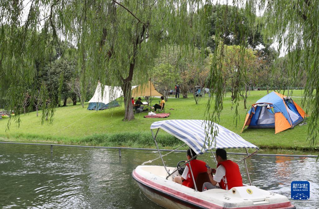 正值丹桂飄香的季節,上海眾多市民游客選擇來到公園綠地或郊外林地搭起帳篷,與家人和朋友一起享受自然風光,放鬆身心。