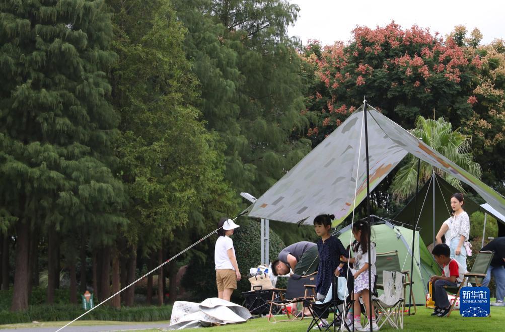 正值丹桂飄香的季節,上海眾多市民游客選擇來到公園綠地或郊外林地搭起帳篷,與家人和朋友一起享受自然風光,放鬆身心。