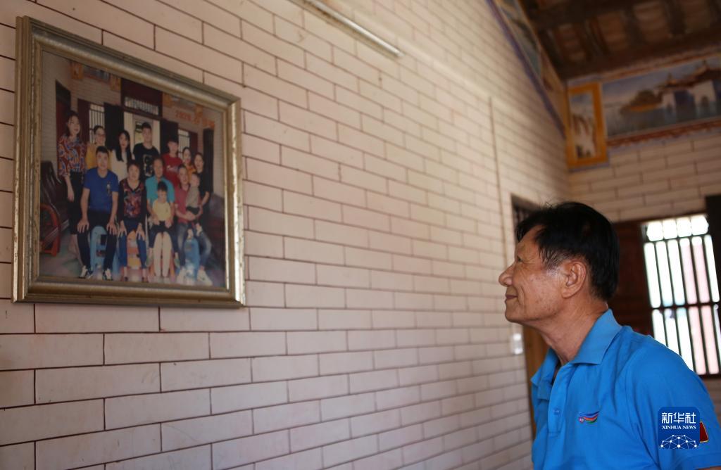 9月19日,在海南省琼海市黃宏波老家中,黃宏波望著墻上的全家福。黃宏波在北島工作時期,鮮少回老家。