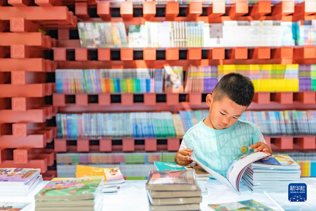 10月3日,小朋友在浙江省溫州市龍灣區鐘書閣書店內閱讀。