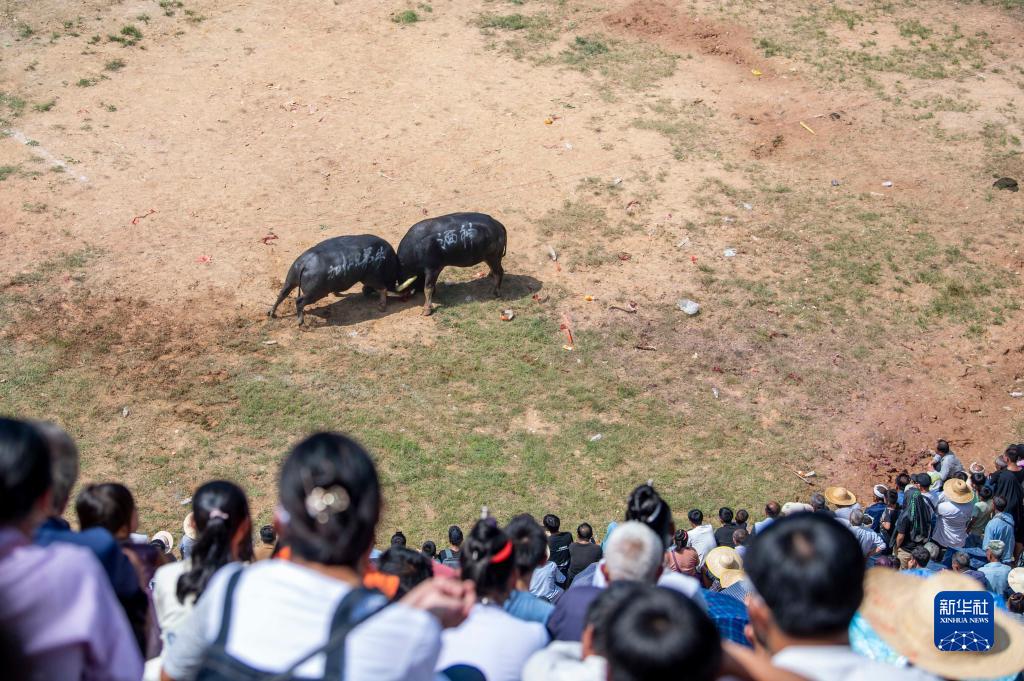 10月4日,人們在貴州省從江縣下江鎮觀看鬥牛。