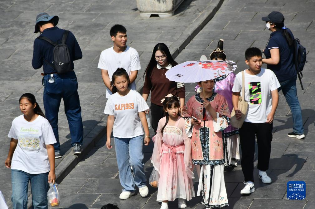 10月3日,游客在河北省邯鄲市永年區廣府古城游玩。