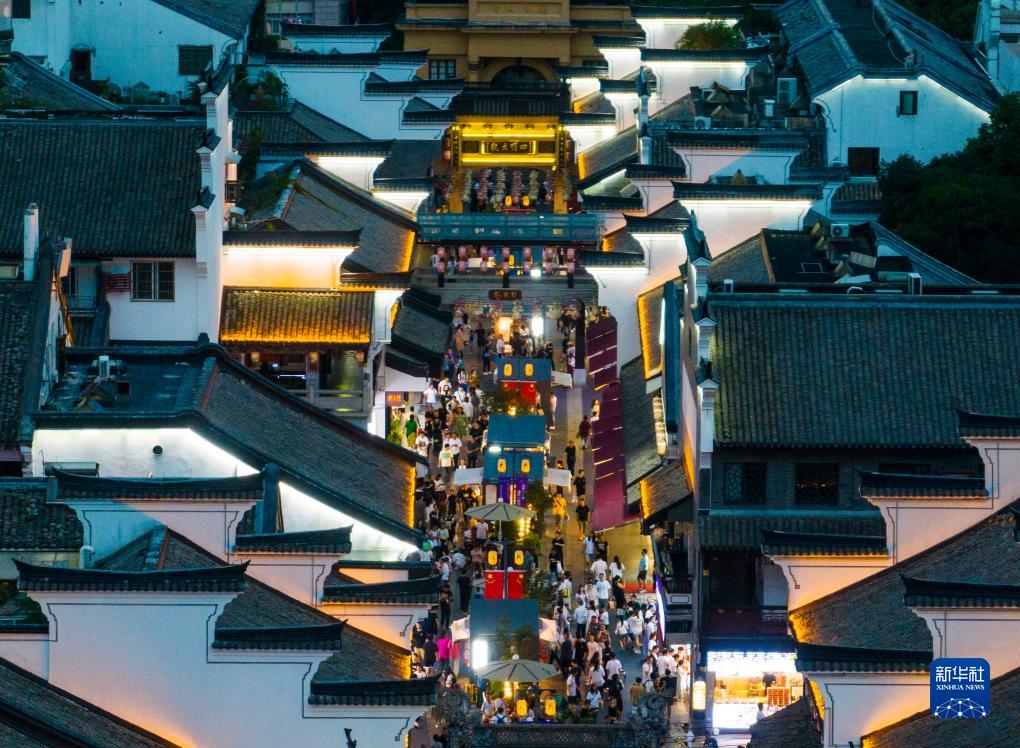 10月3日,游客在浙江省寧波市鼓樓步行街游玩(無人機照片)。