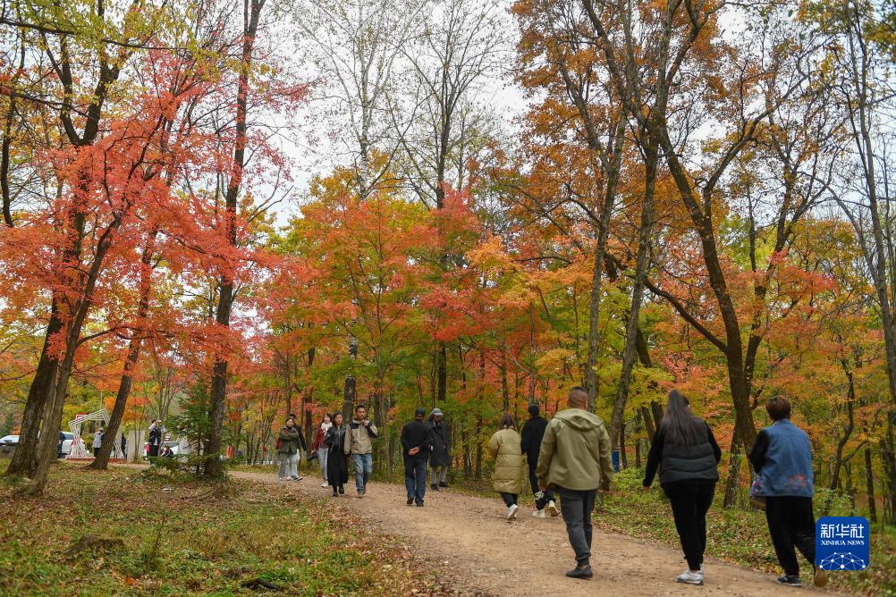 10月4日,游客在吉林省蛟河市紅葉谷景區游覽。