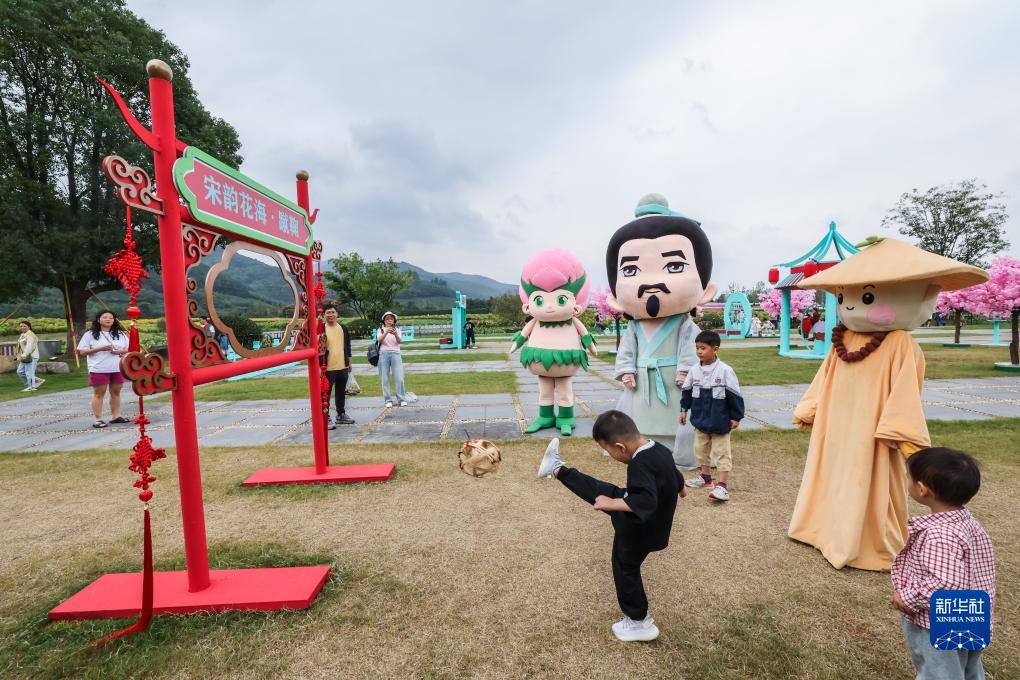 中秋國慶長假期間,浙江省杭州市余杭區徑山鎮徑山花海拾花節暨宋韻游園會開啟。市民游客徜徉在近千畝的徑山花海中,觀賞絢爛的秋日美景,體驗融入宋韻文化內涵的蹴鞠、射箭、投壺等的休閒運動。