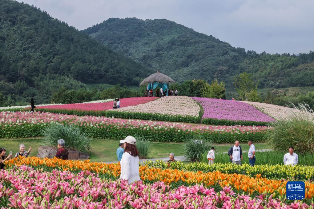 中秋國慶長假期間,浙江省杭州市余杭區徑山鎮徑山花海拾花節暨宋韻游園會開啟。市民游客徜徉在近千畝的徑山花海中,觀賞絢爛的秋日美景,體驗融入宋韻文化內涵的蹴鞠、射箭、投壺等的休閒運動。