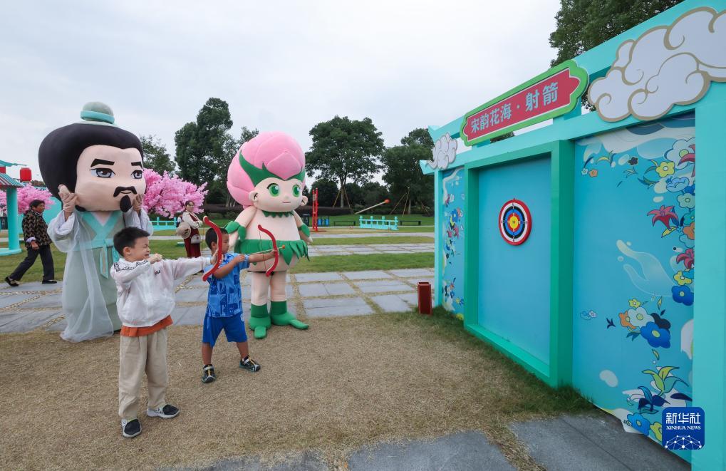 中秋國慶長假期間,浙江省杭州市余杭區徑山鎮徑山花海拾花節暨宋韻游園會開啟。市民游客徜徉在近千畝的徑山花海中,觀賞絢爛的秋日美景,體驗融入宋韻文化內涵的蹴鞠、射箭、投壺等的休閒運動。