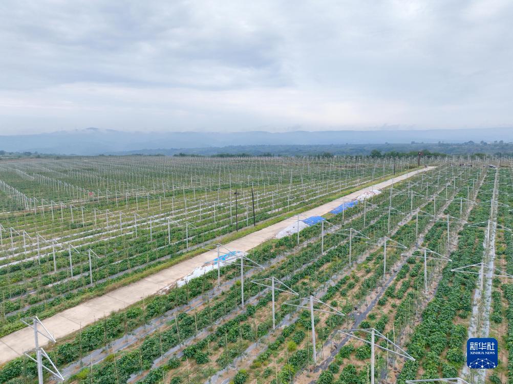 宜川縣雲岩鎮北赤村完成新品種改造的蘋果園(9月27日攝,無人機照片)。