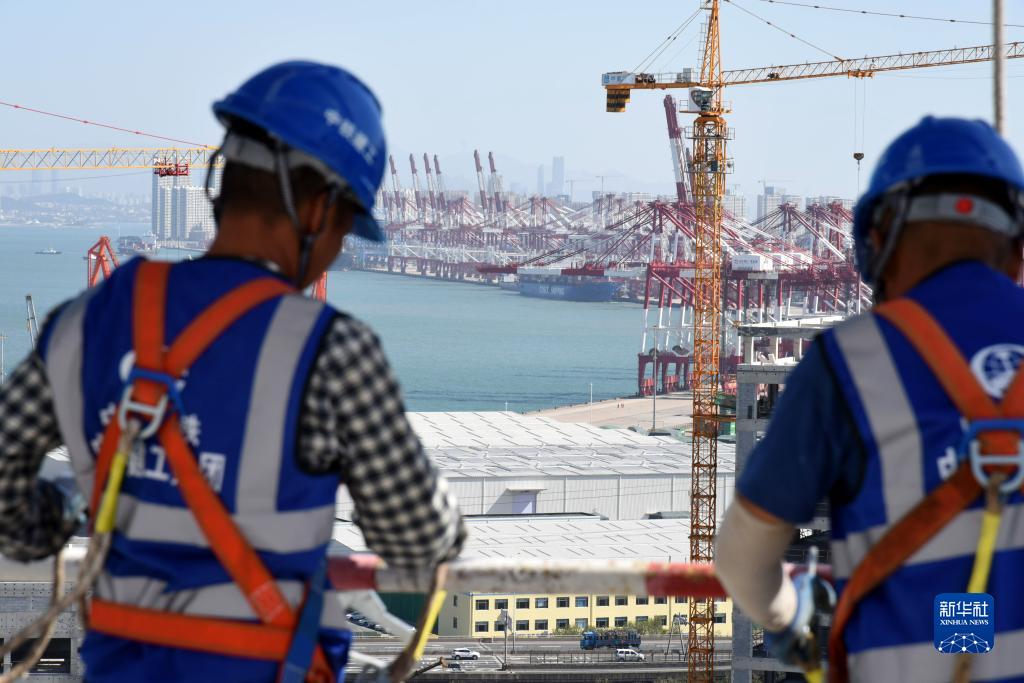 國慶長假期間,在位於中國(山東)自由貿易試驗區青島片區的航運貿易金融融合創新基地項目上,600多名建設者堅守一線,搶抓施工黃金期,奮力衝刺項目建設關鍵節點。