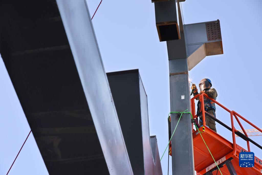 10月5日,中鐵建工建設者在項目工地上進行鋼結構焊接。