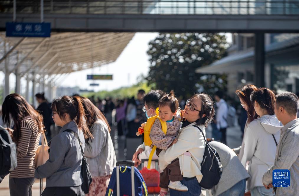 10月5日,旅客在江蘇泰州站站&排隊候車。