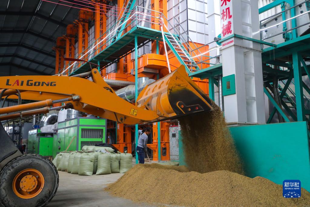 連日來,河南省信陽市天氣陰晴不定,當地農民抓緊有利天時搶收水稻。為防止水稻因多雨天氣影響造成霉變減産,全市各糧食烘乾廠家利用現有數百台烘乾設備,確保稻穀及時烘乾、顆粒歸倉。