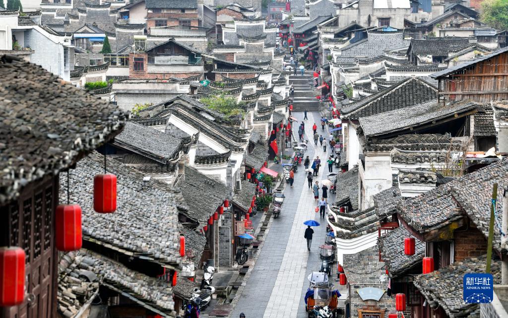 10月5日,游客在貴州省黎平縣古城翹街參觀。