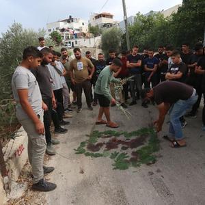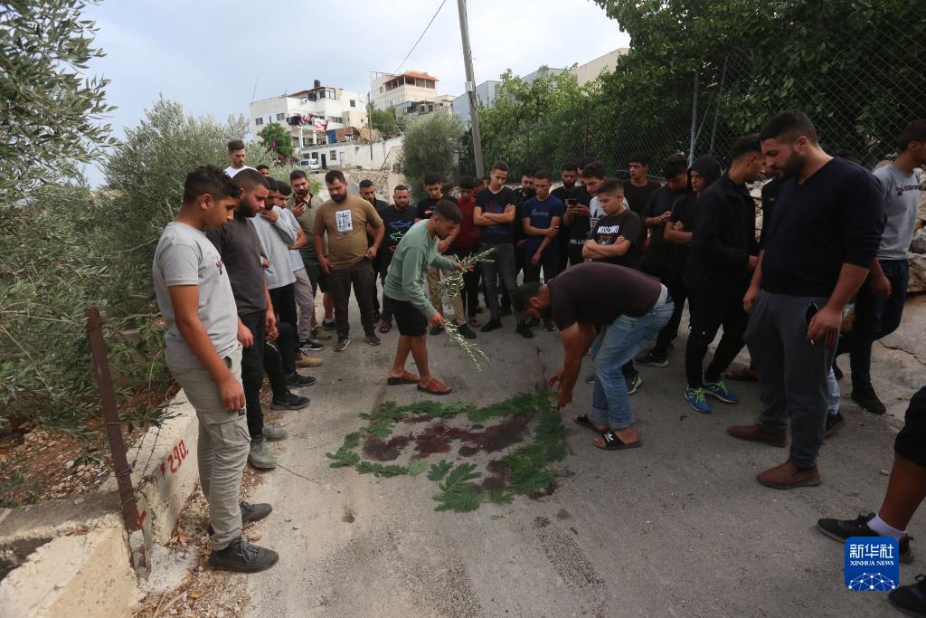 10月5日,在約旦河西岸城市圖勒凱爾姆附近的衝突地點,人們悼念被以色列軍隊打死的巴勒斯坦人。