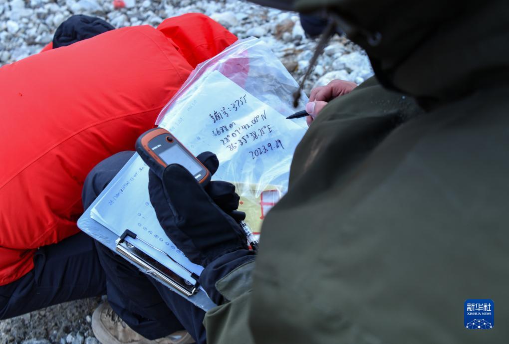 科考隊員記錄採集到的植物樣本信息(9月29日攝)。