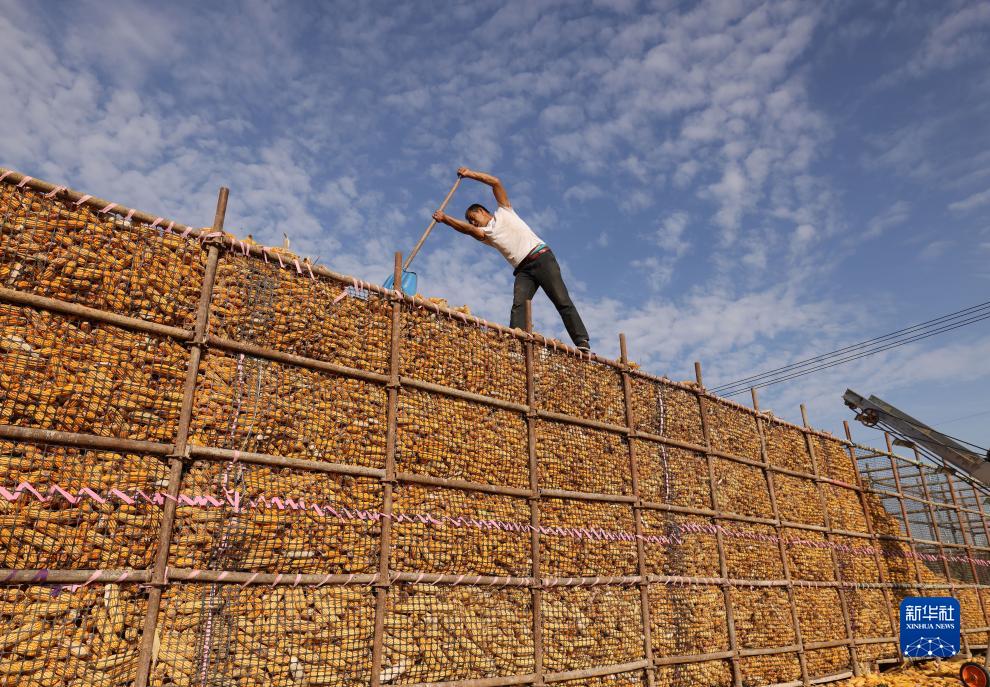 10月5日,河北省邢&市廣宗縣劉南蘇村村民在整理收穫的玉米。