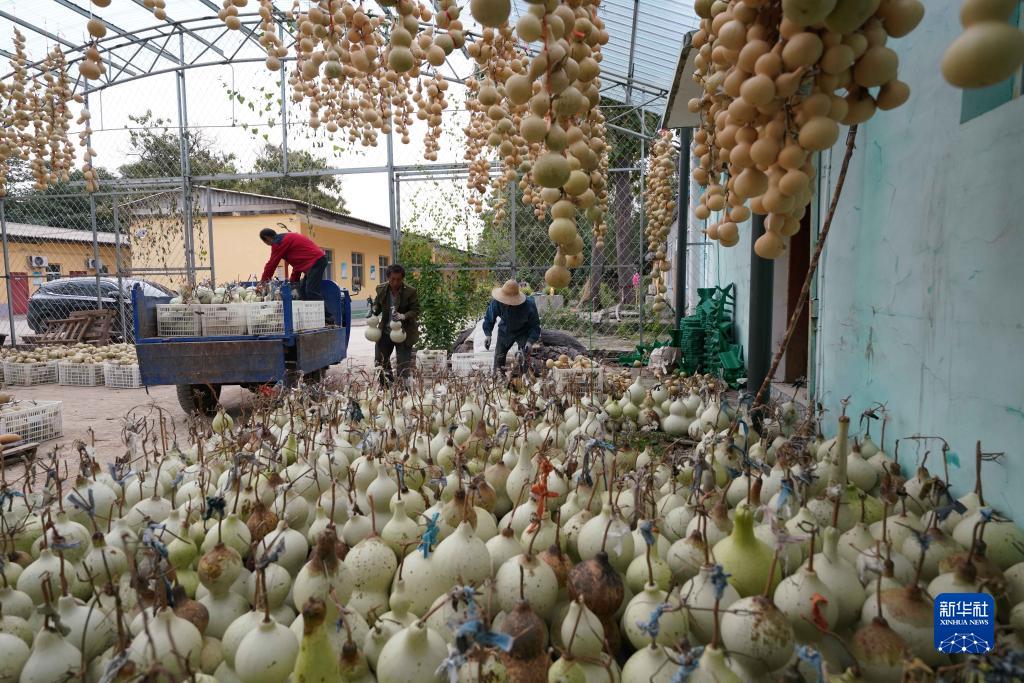 10月5日,河北省邢&市信都區會寧鎮張爾莊村村民在整理擺放葫蘆。