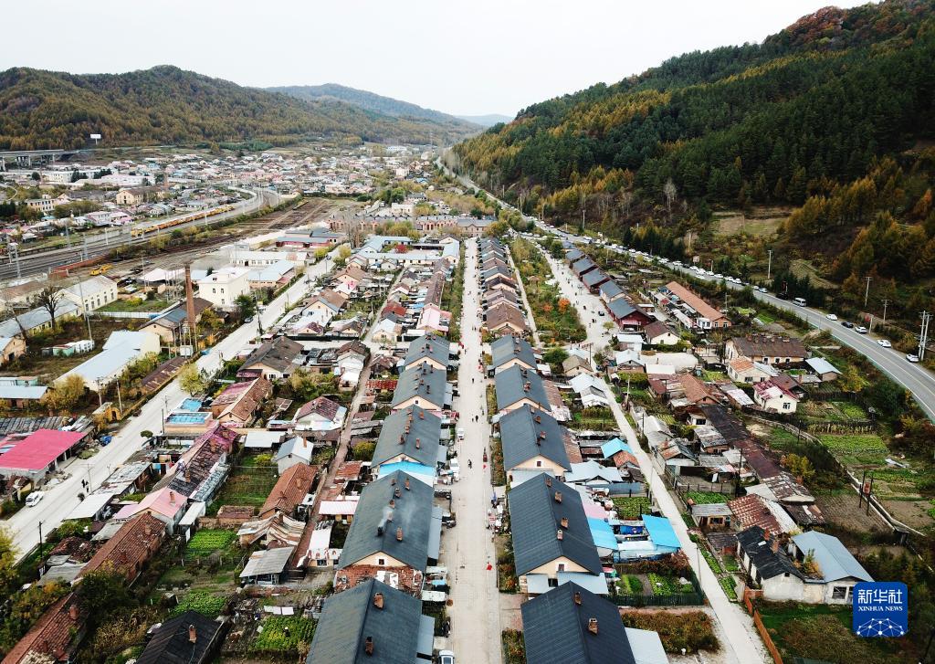 這是10月3日拍攝的橫道河子鎮保護建築街區(無人機照片)。