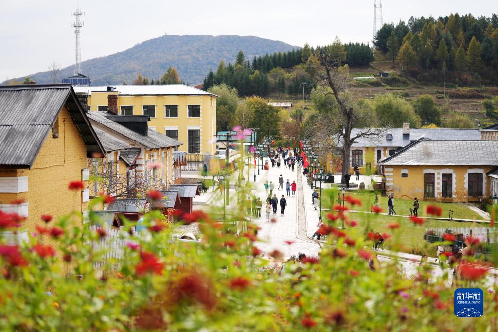 10月3日,游客在橫道河子鎮的文化藝術主題街區游覽拍照。