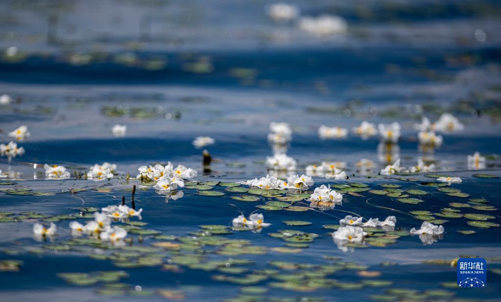 在雲南大理洱海中開放的海菜花(2020年5月31日攝)。在雲南大理洱海,被視為“水質風向標”的海菜花一度難覓蹤跡。2016年底,雲南省開啟搶救式保護工作,全面打響洱海治理攻堅戰。如今海菜花又在清澈的湖水中隨波蕩漾。