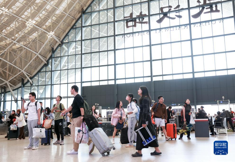10月6日,旅客在湖北武漢火車站準備乘車出行。