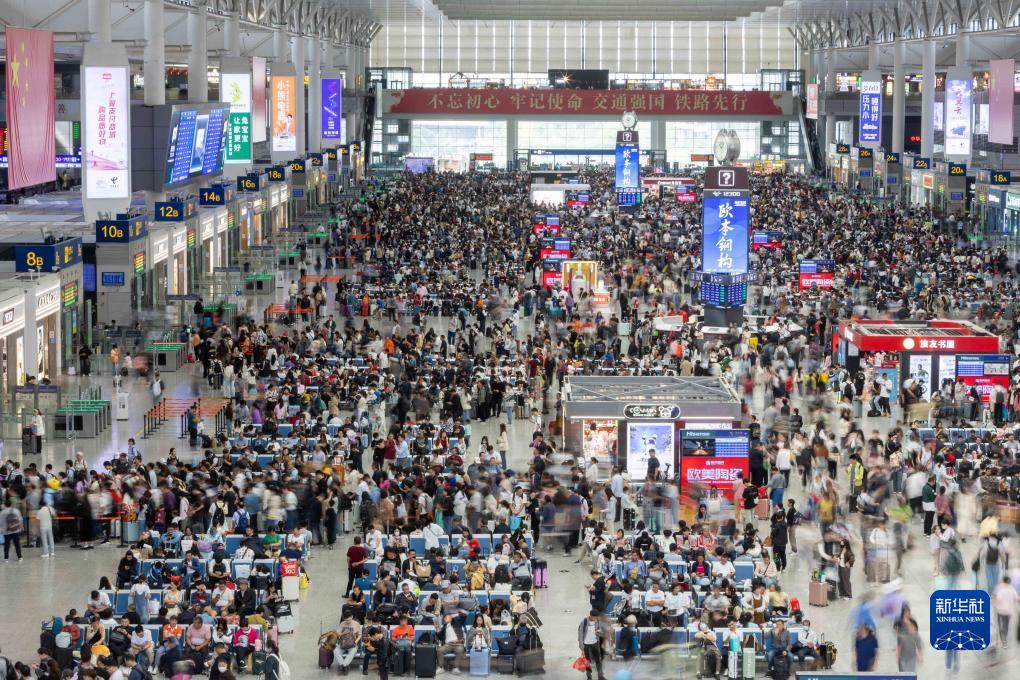 10月6日,上海虹橋火車站候車大廳裏人頭攢動。