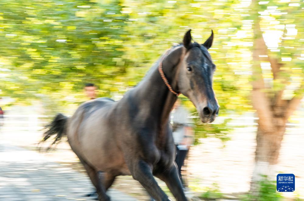 汗血馬學名阿哈爾捷金馬,原産於土庫曼斯坦科佩特山脈和卡拉庫姆沙漠間的阿哈爾綠洲。阿哈爾捷金馬是世界最古老的馬種之一,被土庫曼人稱為“天馬”,是土庫曼斯坦的國家象徵,其形象被繪製在土庫曼斯坦國徽中央。新華社記者 鄔惠我 攝