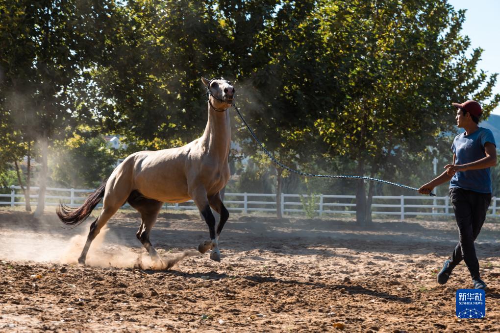 汗血馬學名阿哈爾捷金馬,原産於土庫曼斯坦科佩特山脈和卡拉庫姆沙漠間的阿哈爾綠洲。阿哈爾捷金馬是世界最古老的馬種之一,被土庫曼人稱為“天馬”,是土庫曼斯坦的國家象徵,其形象被繪製在土庫曼斯坦國徽中央。新華社記者 李木子 攝