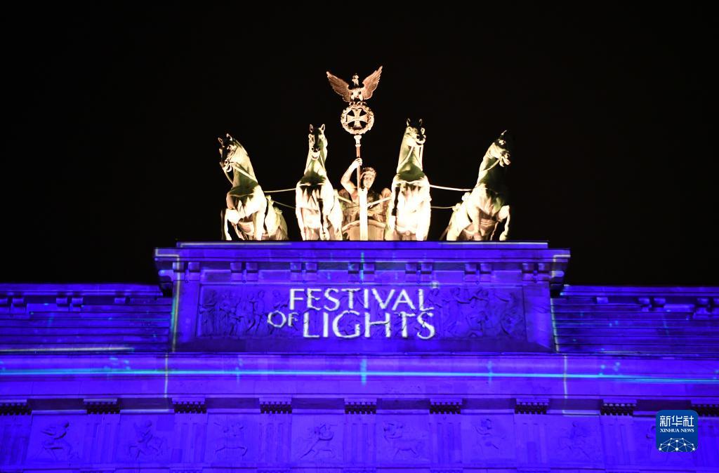 10月6日,德國柏林勃蘭登堡門被燈光點亮。