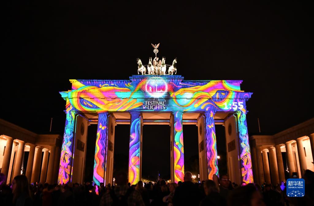 10月6日,德國柏林勃蘭登堡門被燈光點亮。