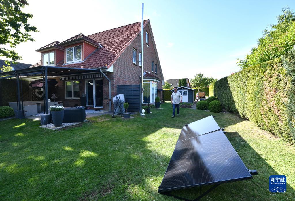 在德國施瓦岑貝克小鎮,當地居民迪爾克家中安裝了中國産太陽能設備(5月30日攝)。