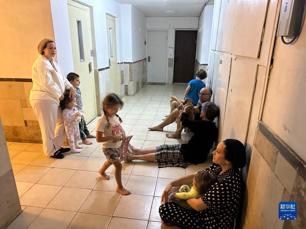 10月7日,防空警報響起後民眾在耶路撒冷一處建築內避難。