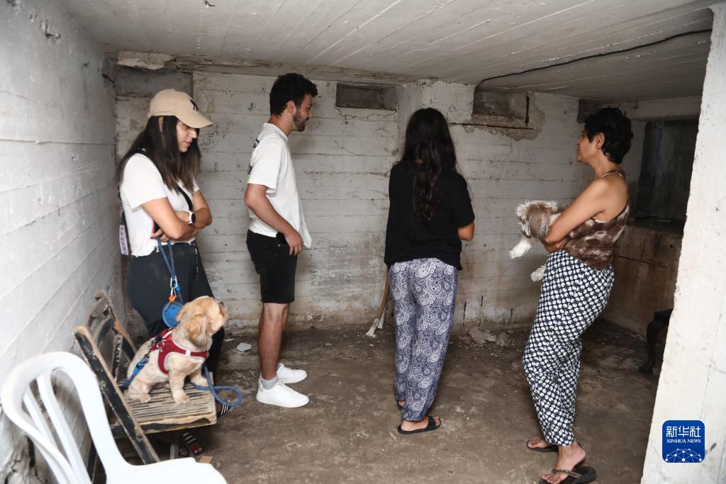 10月7日,防空警報響起後民眾在以色列特拉維夫一處建築內躲避。
