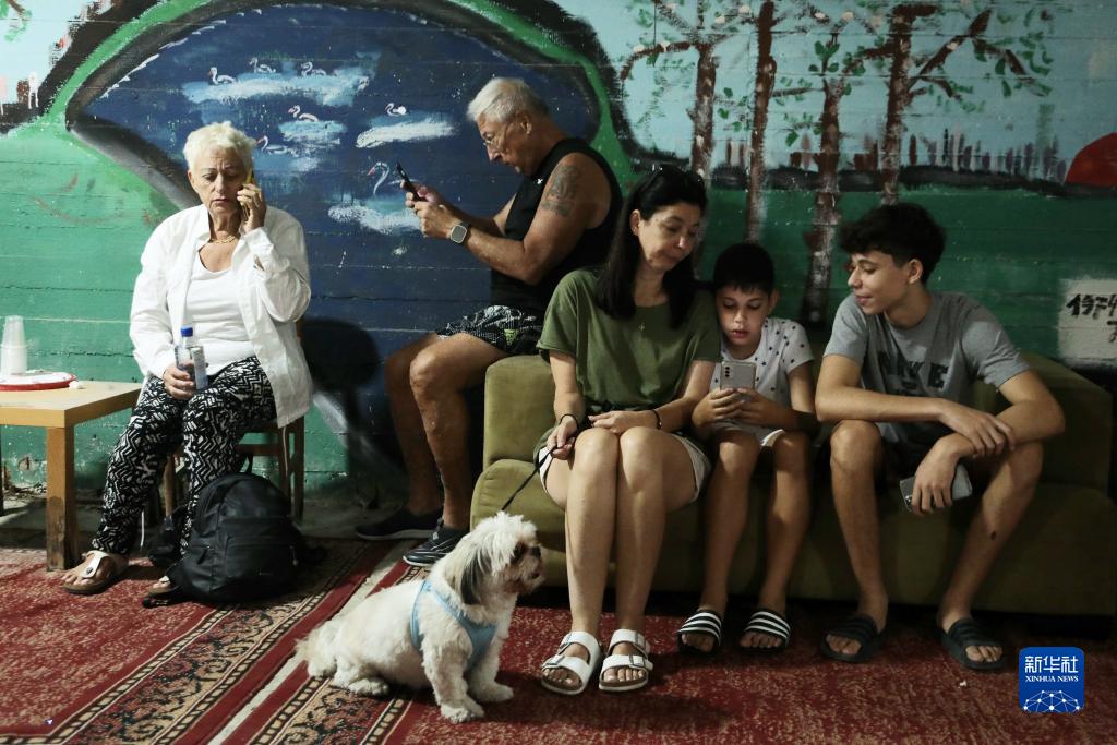 10月7日,防空警報響起後民眾在以色列特拉維夫一處建築內躲避。