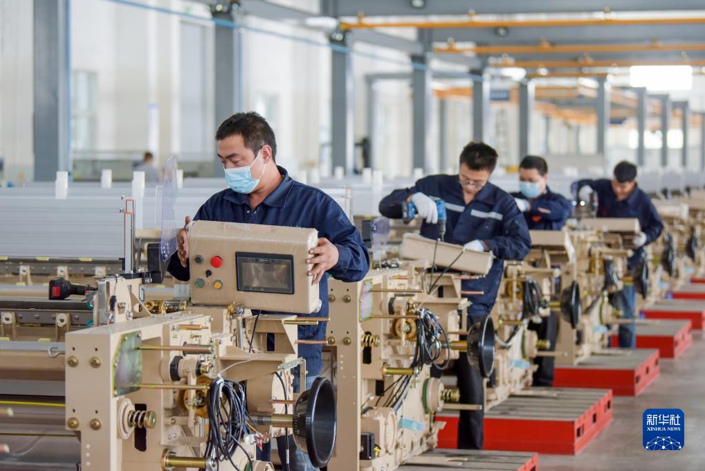 10月7日,在山東省膠州市洋河鎮工業園區一家紡織機械企業,工人生産紡織機械。