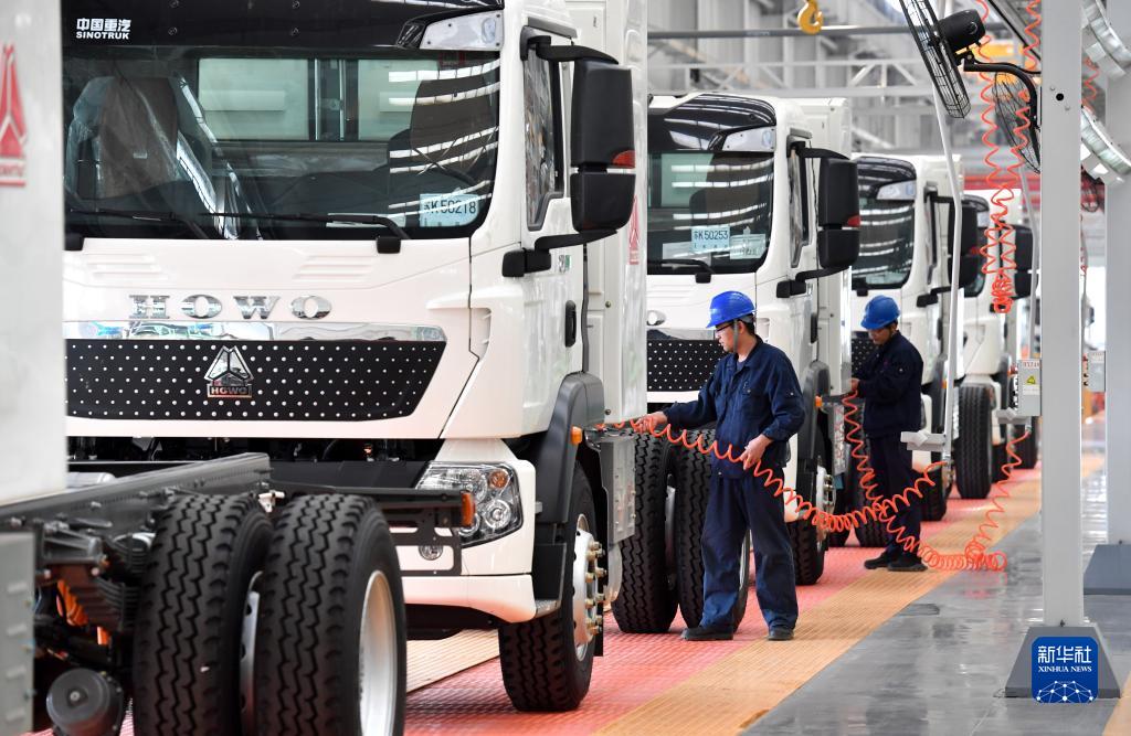 10月7日,工人在河北省石家莊市機械裝備製造園區石煤機公司組裝車間工作。