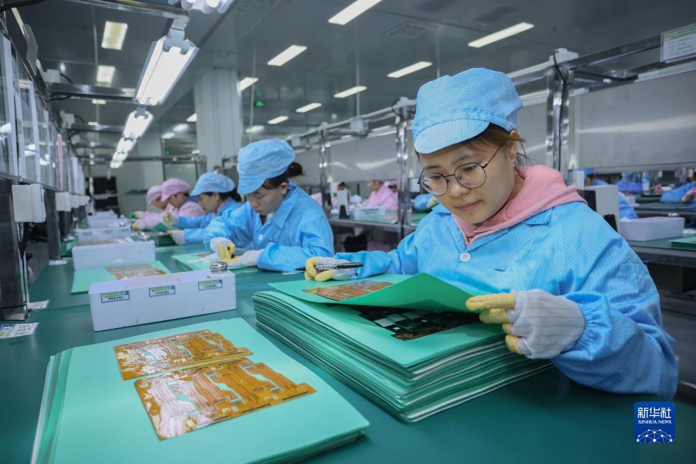 10月7日,工人在四川省遂寧市高新區一家電子企業的生産線上作業。