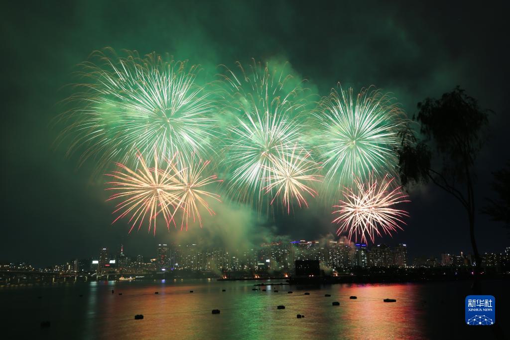 當日,首爾國際煙花節在韓國首爾汝矣島漢江公園一帶舉行,絢麗煙花點亮了首爾夜空。新華社記者 王益亮 攝